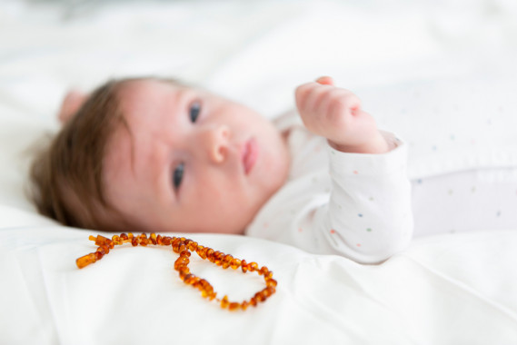 L'ambra contiene acido succinico, che si ritiene abbia proprietà antinfiammatorie e antidolorifiche. Si pensa che quando le perle vengono indossate vicino alla pelle, l'acido succinico viene rilasciato nel corpo, fornendo sollievo. Funzianano? Non ci sono prove scientifiche, pare che abbiano un effetto placebo… sul genitore.