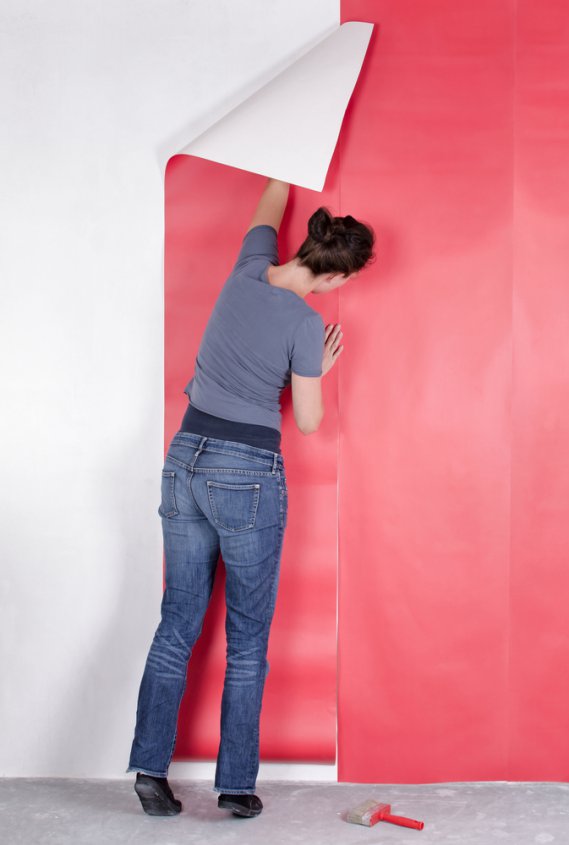 Si trovano in commercio delle carte che semplificano molto il lavoro, sono le carte autoadesive che hanno già uno strato di colla predisposto sul rovescio. L’applicazione è molto semplice, basta tagliare il pezzo di telo, arrotolarlo, immergerlo in una vaschetta piena d’acqua e quindi srotolarlo e applicarlo direttamente sulla parete.