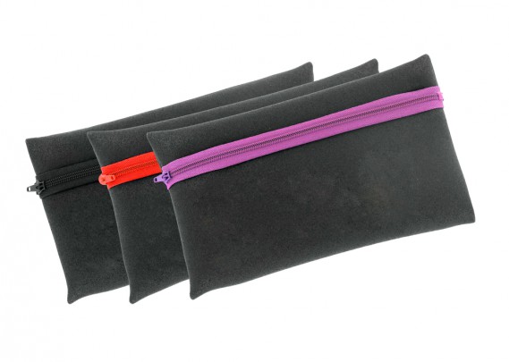 - Ritagliare due rettangolini con i resti di stoffa per coprire le estremità della cerniera e rifinire l’astuccio Incollare a caldo sulle due aperture alle estremità dell’astuccio