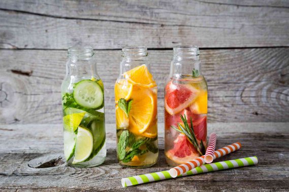 Altri accostamenti interessanti per creare la tua fruit detox water perfetta sono mela e cannella, fragole e kiwi, cetriolo limone e menta, pesca e melone, anguria e menta, ananas, lime e zenzero o tè verde menta e lime. Divertiti ad inventarne di nuove, mescolando la verdura che preferisci con menta, mirtilli, melone o melagrana e un pizzico di zenzero. Aggiungi l’acqua detox alla tua giornata, perché assieme ad una dieta sana e ad un po’ di esercizio fisico vedrai presto il suo effetto drenate e soprattutto la tanto agognata pancia piatta!