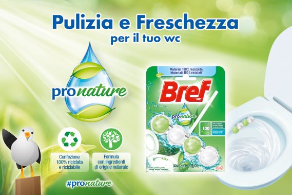 Bref ProNature è la prima tavoletta di Bref che assicura la solita efficienza dei prodotti Bref con una formula ed un packaging che rispettano l’ambiente. Come? Bref ProNature è prodotto con: