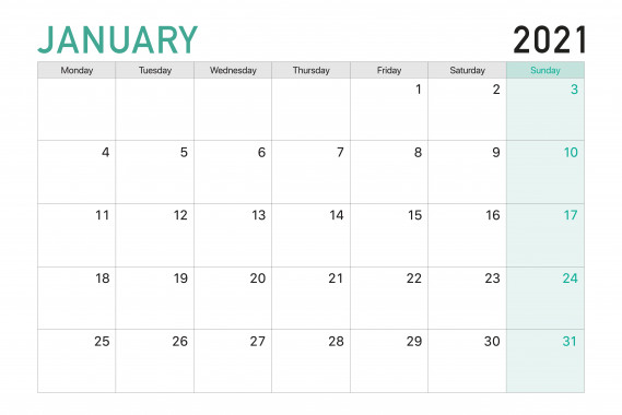 Il calendario 2021 da stampare mese per mese è una base per il calendario da tavolo, l’agenda fai da te e la pianificazione di tutto l’anno. Nella fotogallery in alto, puoi scaricare gratis i planner. Si tratta di modelli dalla grafica essenziale con un piccolo spazio bianco per i giorni della settimana, le domeniche si distinguono per il colore.