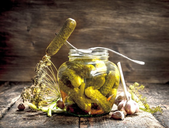 Tagliamo il picciolo dei nostri cetriolini e inseriamoli nei vasetti da conserva, alternandoli con aglio, peperoncino, pepe e aneto. Non riempiamo mai fino all'orlo, ma anzi asciamo almeno 3cm di spazio dalla bocca del vasetto. Poi versiamo il liquido ancora caldo e copriamo, stavolta fermandoci a circa 1,5cm dal bordo. Chiudiamo ora il vasetti e mettiamoli a bollire per la seconda sterilizzazione.