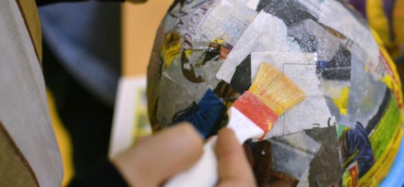 Ad ogni modo, a mano a mano che attacchi i ritagli di carta, stendi la colla anche su quelli già fissati in modo da compattarli senza grinze. Se queste dovessero comparire, puoi appiattirle e stenderle con lo stesso pennello o anche con le dita.