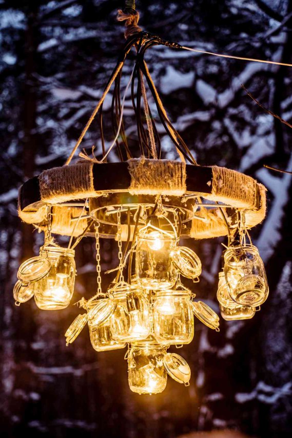 Uno dei lampadari più scenografici è sicuramente quello creato con vecchi barattoli di vetro. Vanno bene come grandezza quelli della marmellata, ma scegli tu quale usare a seconda della reperibilità in casa. Scegli di quante lampadine vuoi sia composto – considera una lampadina per barattolo. A questo punto, procurati le lampadine con filo e portalampade. Pratica un foro per ciascun coperchio del vasetto di vetro per inserirci la lampadina. Richiudi il coperchio e appendi i tuoi vasetti al soffitto a diverse altezze. Puoi anche fissarle attorno ad un vecchio lampadario circolare con dello spago per un effetto davvero originale.