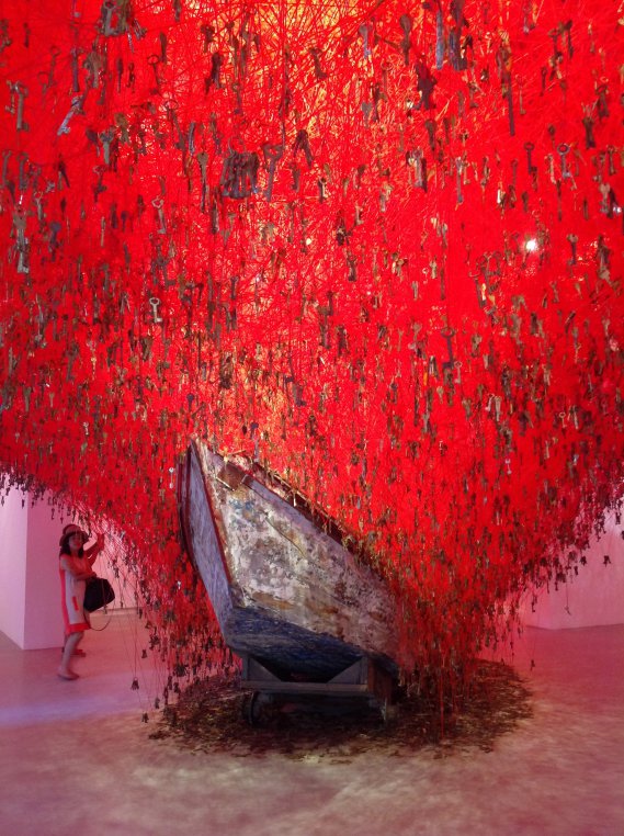 Ai Giardini, se per te è la prima visita, perdi un po’ di tempo a osservare l’architettura dei 29 padiglioni nazionali, che sono stati costruiti tra il 1907 e gli anni Cinquanta. Se li conosci già e vuoi concentrarti sui padiglioni migliori, rimarrai senza fiato davanti al padiglione della Corea, che parla dell’uomo nel suo approccio allo spazio, e del Giappone, in cui migliaia di fili rossi sostengono chiavi nell’istallazione di Chiharu Shiota “The Key in the Hand”. Il padiglione della Svizzera ha fatto molto scalpore perché ti conduce di fronte a una piscina che sembra piena di sangue: negli anni questo padiglione ha avuto una tradizione pacifista ma questa, forse, non è stata una delle imprese migliori. In tutta la Biennale troverai istallazioni video molto belle; sarà molto impegnativo vederle tutte, quindi non dovresti perdere Halka/Haiti nel padiglione Polonia, in cui C.T. Jasper e Joanna Malinowska hanno voluto proporre la ripresa dell’opera lirica Halka ambientata in un villaggio haitiano, riprendendo il tema del film Fitzcarraldo.