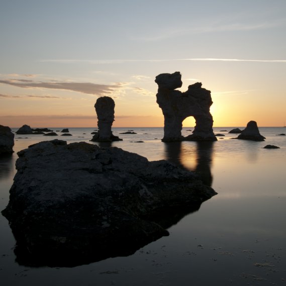 Il paesaggio di quest’isola è mozzafiato, grazie alle sue imponenti formazioni rocciose, chiamate rauk, intervallate da spiagge sabbiose.