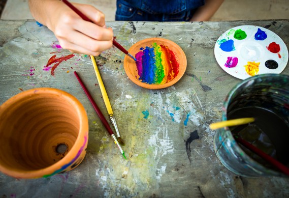 Abbiamo in casa un po’ di gesso? Proviamo ad usarlo per decorare i vasetti. Passiamo uno strato di gesso ammorbidito in acqua e applichiamolo sul vasetto. Spalmiamolo bene aiutandoci con un pettine per capelli. Lasciamo asciugare. Poi coloriamo il vasetto con un colore acrilico, e lasciamo asciugare di nuovo. Poi prendiamo della pasta modellabile sigillante e lavoriamola con le mani per creare dei fiori o delle farfalle. Lasciamo asciugare, coloriamo le applicazioni e incolliamole al vasetto con la colla forte.