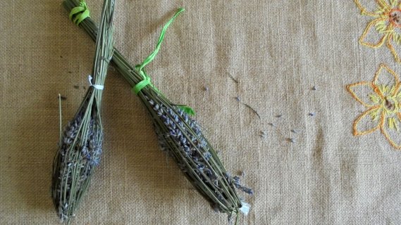 In alternativa, possiamo anche realizzare delle pannocchiette di lavanda intrecciate con i nastri, i cosiddetti fusi di lavanda che venivano usati per il corredo.