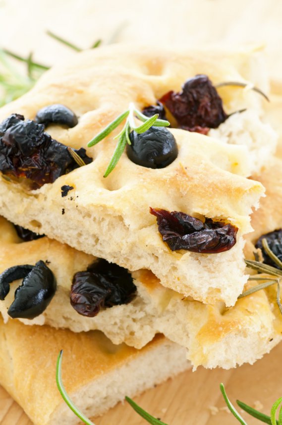 La focaccia alle olive è una variante della classica focaccia genovese, in dialetto fugassa, il pane condito e dalla caratteristica forma piatta, tipico della città ligure.