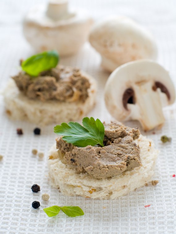 Pulisci e lava i funghi. Fai appassire l’aglio e la cipolla tritati in una padella con il timo e il Brandy. Fai asciugare, versa in una ciotola e tieni in frigo per almeno mezz’ora. Incorpora al composto le noci tritate e la robiola impastando bene. Servi il paté a piacere con fette di pane tostate.