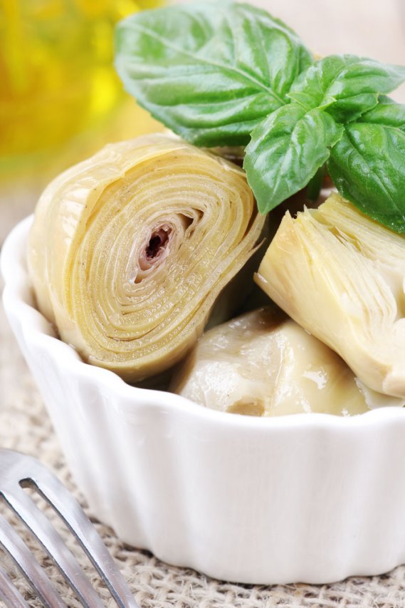 1 – Prendi un chilo di carciofi e puliscili eliminando tutte le foglie esterne scure fino a quando rimarranno solo quelle chiare all’interno. Taglia le foglie del carciofo a metà per riuscire a rimuovere anche i gambi fino a quando otterrai solo i cuori.