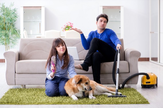 Laviamo cuscini e fodere delle cucce ad alte temperature e usiamo un'aspirapolvere con sacchetto per asportare eventuali tracce di escrementi o uova da ogni area di casa. Il sacchetto andrà poi subito buttato all'esterno.
