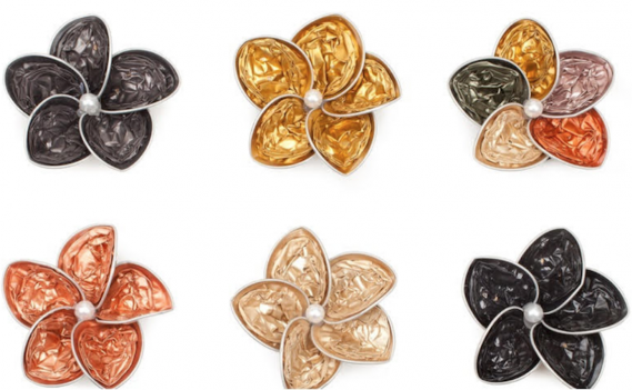 Schiacciare le varie capsule fino ad appiattirle con l’aiuto di una pinza, fare un foro al top sul bordo di ognuna ed inserire uno spillo con la cappocchia grande nel foro. Poi inserire lo spillo in un foro del fiocco di neve in metallo. Fare la stessa cosa con le altre capsule per creare dei petali che andremo ad assemblare per formare un fiore. Infine foderarlo con del feltro che andremo ad incollare sul retro. A questo punto è possibile fissare con un paio di punti di ago e filo la spilletta, o usarlo come fiore decorativo.