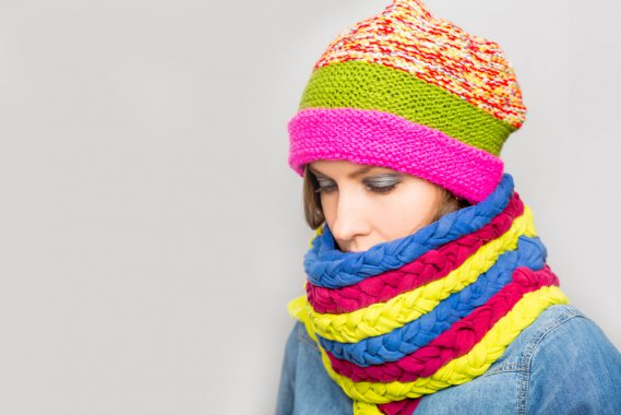 Taglia la maglietta ad anelli e poi fai un taglio al centro, prendi tre striscioline e realizza delle trecce. Mentre intrecci puoi inserire qualche perla colorata in resina dal foro largo (due o tre vanno bene) in maniera distanziata, e alla fine fai un nodo o usa un doppio anello in metallo come chiusura. Se invece vuoi realizzare una sciarpa fai quattro o cinque trecce e cucile fra loro.