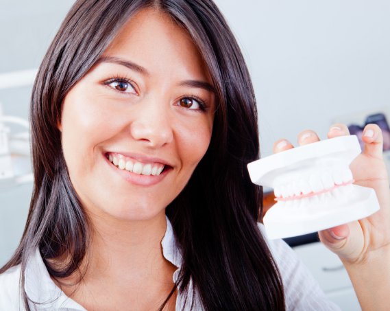 Gli impianti dentali e le dentiere sono costituiti da denti non naturali, falsi: potrebbero fare riferimento alla mancanza di verità nella nostra vita o nelle altre persone, al relativo senso di colpa, alla liberazione o al rifiuto della falsità o comunque di qualcosa di artefatto, ma ricordiamo che, nel sogno, non necessariamente ci sono corrispondenze lineari tra gli elementi sognati e le situazioni della vita cosciente.