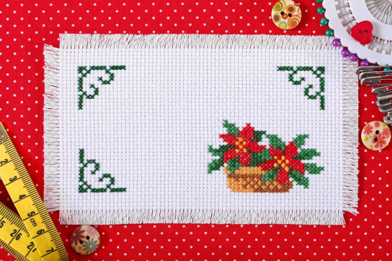 Dunque, procuriamoci le matassine dei rossi e dei verdi e, in base al lavoro fatto a mano che abbiamo scelto, abbiniamole con il bianco e gli altri colori. Così, trasferiamo la bellezza della poinsettia sulle stoffe e decoriamo la casa e l’albero di Natale, insieme alle palline ricamate a punto croce e agli altri emblemi delle festività come Babbo Natale.