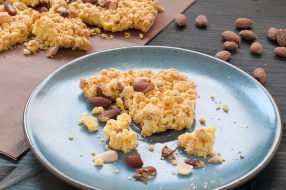 Livelliamo leggermente la superficie senza appiattire troppo le "fregole" e cuociamo in forno già caldo a 150° C statico per almeno un'ora o comunque fino a quando la torta non si dora in superficie. A questo punto sforniamo e lasciamo raffreddare completamente prima di servire in tavola.