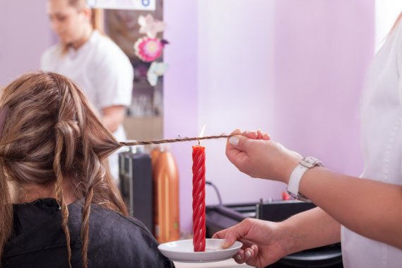 Da qui, con l'aiuto delle dita, sfilerà dalle punte fino alla radice, le parti dei capelli danneggiate e in ultimo passerà la fiamma di una candela su tutta la lunghezza. Il fuoco infatti brucerà letteralmente le doppie punte in evidenza e al coiffeur resterà l'ultimo compito, di tagliare via le bruciature.