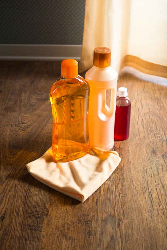 Per trattare con efficacia questo tipo di pavimento va usata una miscela di acqua e sapone di Marsiglia o un detersivo specifico per superfici delicate, avendo l’attenzione di utilizzarlo nel dosaggio raccomandato. Invece di sciogliere pian piano il sapone nell’acqua, strofina una spugna inumidita sullo stesso e poi premila dentro al secchio con l’acqua, per accelerare i tempi. Se il detergente fatto in casa ha una profumazione troppo neutra e preferisci optare per un tocco di freschezza in più, puoi aggiungere al detersivo 5 gocce di olio di cedro, che idrata il legno e dona un leggero profumo all’ambiente della tua casa.