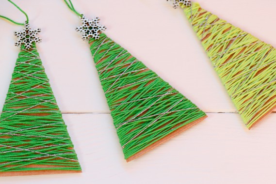 - Fai dei taglietti laterali sulle figure, quindi fissa il filo in un punto, con un po’ di colla o del nastro, e avvolgilo intorno alla decorazione incastrandolo nei tagli;