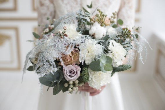 Per un matrimonio in mood invernale, tra i fiori invernali più belli, possono comparire aghi di pino, pigne, bacche, piante grasse, cristalli. Per il bouquet da sposa d’inverno, ci viene spontaneo pensare a colori che non danno nell’occhio e si mantengono sulle nuance tenui e delicate. Ma, anche per l’aspetto cromatico, l’ultima parola spetta a te.