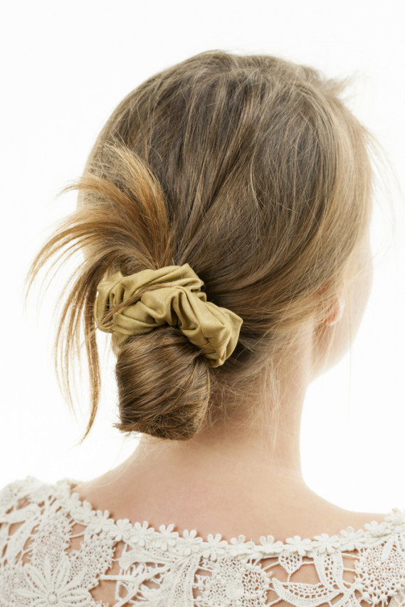 Una delle principali preoccupazioni degli chignon con i capelli corti è il volume. Ma, con un buon prodotto volumizzante, puoi creare magia! Come si fa? Applica un prodotto volumizzante a scelta sui capelli umidi, concentrandoti sulle radici. Spruzza uno spray protettivo contro il calore e asciuga con il phon, utilizzando una temperatura bassa. Raccogli più capelli che puoi in una coda di cavallo bassa sulla nuca e legala con un elastico. Dividi la coda di cavallo in tre sezioni. Prendi una sezione, avvolgila attorno alla base della coda e tienila in posizione con l'aiuto delle forcine. Fai lo stesso con le altre due sezioni. Spruzza una lacca a tenuta forte su una spazzola per capelli e spazzola per evitare le ciocche ribelli. Usa una lacca a tenuta da media a forte per sistemare i capelli e impedire che la crocchia si sfaldi.