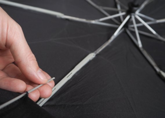 Se le bacchette si sganciano, possiamo provare a tenerle insieme con il fil di ferro. Nel caso in cui si rompano, possiamo fare un tentativo sostituendole con altre bacchette prese da altri ombrelli rotti e non più utilizzabili. Certo, questo tipo di riparazione richiede un po’ più di manualità e di attenzione per non farsi male.