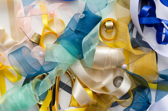 Ago da ricamo lungo 10cm, colla a caldo, metro, nastro di organza alto 3cm