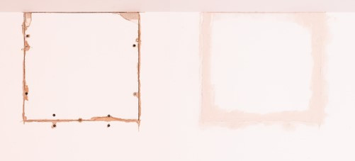 Per tappare un buco nel cartongesso con la ricostruzione fai da te, puoi ritagliare la zona intorno in modo da ottenere una finestrella rettangolare.