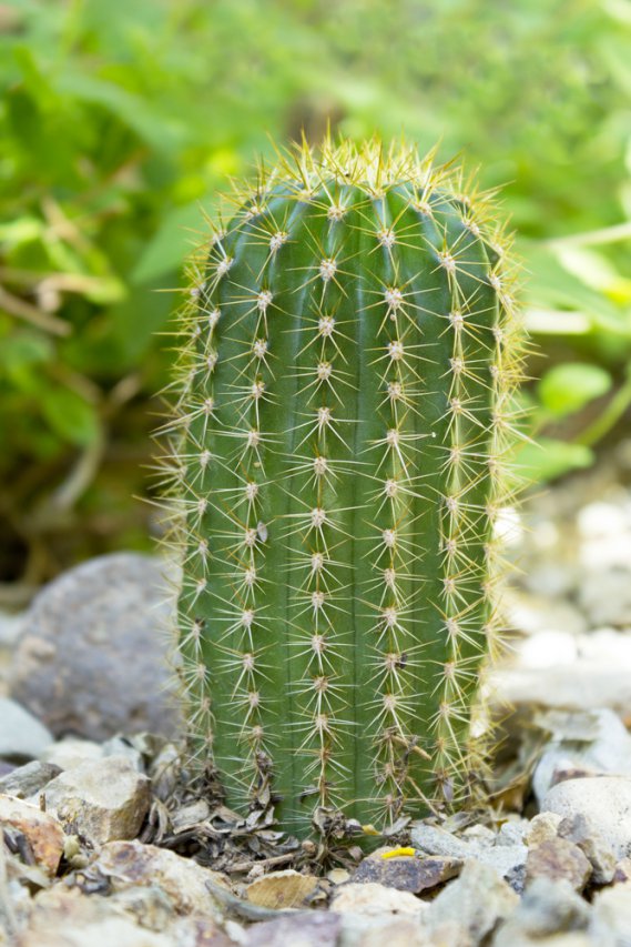 Ha fusti biancastri lanosi con spine gialle e robuste. Ramificate alla base le piante più vechie possono formare cespi fitti di fusti alti fino a 90 cm. Quando è adulto produce fiori molto grandi, bianchi, profumati.