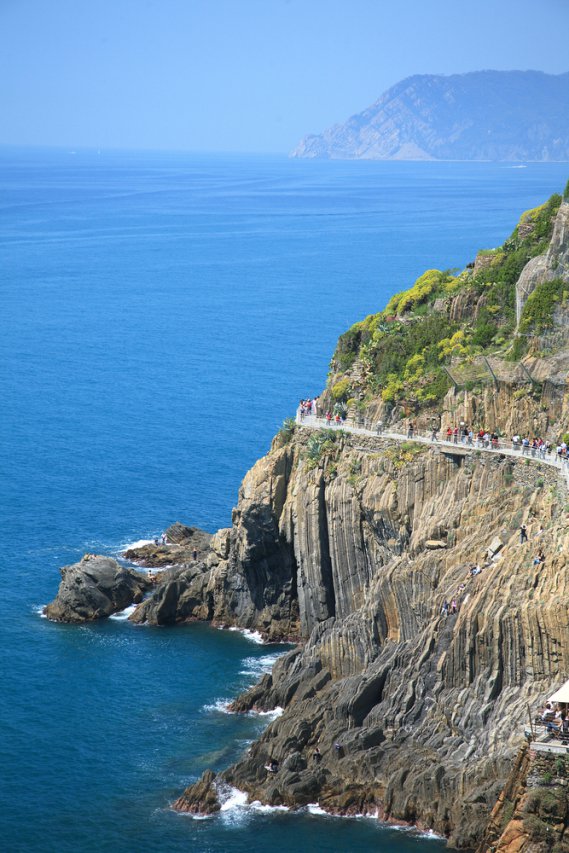 Le Cinque Terre offrono sentieri di grande suggestione indicati per coloro che sono già dei camminatori esperti. Per i veri sportivi c'è il sentiero detto azzurro, impervio e a tratti faticoso, che attraversa la famosissima e romantica 'Via dell'Amore'. Prima di arrivarci bisogna percorrere l'itinerario, lungo circa 12 chilometri, che da Riomaggiore porta a Monterosso raggiungendo una quota massima di 200 metri che tocca la caratteristica frazione di Vernazza, Prevo. Il tragitto è caratterizzato da 8 chilometri di sentieri e da 2 chilometri di mulattiere acciottolate e di gradinate. Al termine di questa faticosa camminata ecco che apparirà la famosa 'Via dell'Amore'.