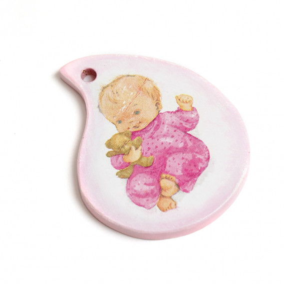 Con la tecnica del decoupage, al centro della sagoma scelta, incolla un’immagine a tema nascita, ad esempio la figura di un neonato o una neonata, un orsetto, un animaletto baby. Ritaglia l’immagine da un’illustrazione che hai già o prendi la carta decoupage oppure stampala (ma, in questo caso, fai una prova preliminare perché il colore potrebbe sbavare).