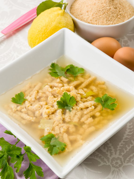 2- Lascia riposare per qualche minuto. Nel frattempo fai sobollire il brodo. A questo punto con l'apposito ferro ricava i passatelli, piccoli e lunghi cilindri che sembrano quasi “vermicelli”. Schiaccia con energia il ferro contro la palla e a mano a mano che si formano i passatelli tuffali nel brodo. Saranno cotti non appena saliranno a galla. Servi subito.