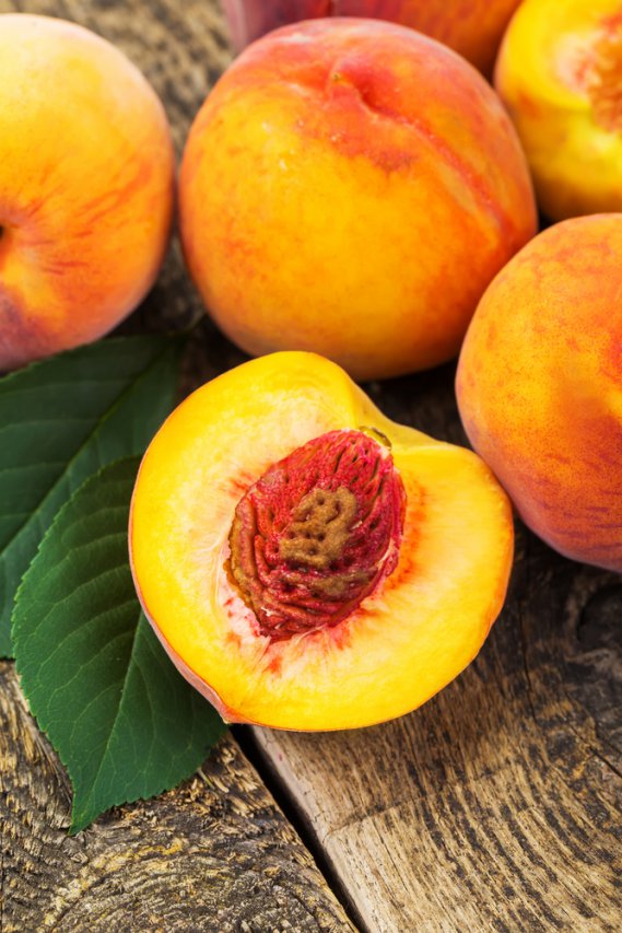 Il Prunus persica, dunque, produce frutti dalla buccia vellutata o glabra che si distingue per il colore giallo o rosso – carminio. Le varietà sono numerose ma si possono riconoscere senza molta difficoltà: Pesca gialla, succosa e con il nocciolo libero, Pesca bianca, profumata e filamentosa e Pesca noce, una varietà più croccante e con la buccia liscia e rossa chiamata anche ‘Nettarina’. Un interessante variante è la ‘Merendella’, dalla pelle liscia ma dal colore bianco – verde diffusa in Calabria, la Pesca di Bivona o ‘Montagnola’, senza dimenticare la Pesca Saturnina, dalla forma schiacciata e dal sapore intenso e, infine, la Percoca, tra le varietà la più adatta alle trasformazioni industriali.