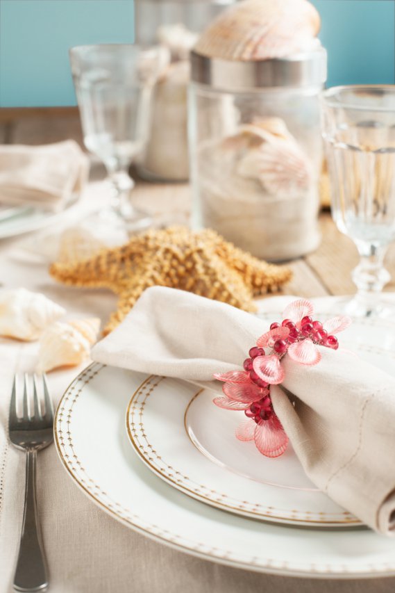 Se, invece, vuoi utilizzare una preparazione più classica e lasciare un unico riferimento al mare, puoi optare per le decorazioni della tovaglia. Grazie alla tecnica dello stencil puoi trasformare una tovaglia monocromo qualsiasi in un’esplosione di conchiglie e stelle marine di tante forme e misure.
