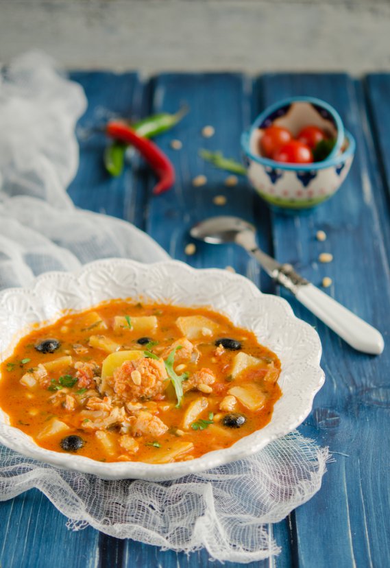 Per preparare il merluzzo con pomodoro, prepara un sugo leggero con olive a pezzetti e capperi, cuocendo per circa 10 minuti.