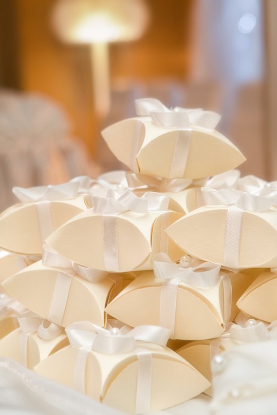 Non dimentichiamoci poi dei confetti, tradizione irrinunciabile per ogni matrimonio. Il numero dei confetti deve essere sempre dispari. Simpatica la soluzione di far trovare dei segnaposti contenenti un confetto direttamente sui tavoli, oppure la sposa li distribuisce con un cucchiaio d'argento, prelevandoli da una ciotola portata dallo sposo.