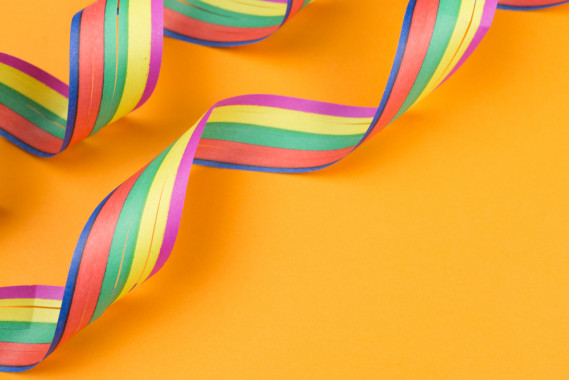 Tagliare una striscia lunga circa 15 centimetri e incollarvi ad essa un’altra di differente colore. Alternare i due colori. Incollare con il nastro biadesivo un’estremità nella zona alta del muro e torcere leggermente la lunga striscia colorata, poi fissarla sempre con il nastro sul muro in modo da crere un backdrop o sfondo decorativo perfetto per un party di Carnevale.
