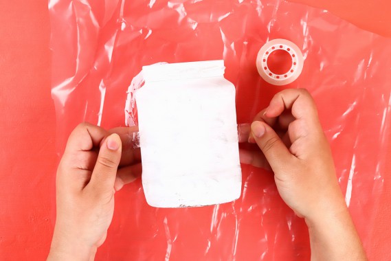 Ricoprire di carta di giornale il piano da lavoro in modo che i bimbi possano lavorare tranquillamente. Aprire il barattolo e tenere il coperchio da parte. Scegliere lo sticker che fa al caso nostro (albero, pupazzo di neve, pacchetto regalo, fiocco di neve, stella) e incollarlo sul vetro. Poi passare la vernice bianca o rossa con il pennello piatto su tutta la superfice di vetro ricoprendo anche l’adesivo. Se ci piacciono i barattoli a strisce è possibile usare invece dell’adesivo tre pezzi di nastro adesivo da far aderire sovrapposti lasciando un po' di spazio tra l'uno e l'altro.