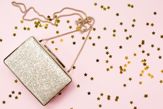 Se la tua borsetta ha già dei decori e delle applicazioni in stoffa, basta aggiungere strass e piccole pietre per creare dei punti luce.