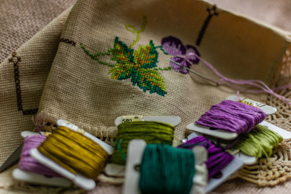L’uva ricamata, infatti, è bella da vedere su una tovaglia per la tavola, sul grembiule o anche in una cornice, magari vicino ad altri frutti o accanto a dei fiori.