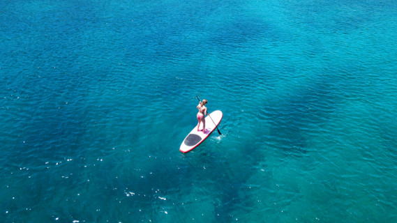 Sembra una tavola da surf in realtà per praticare il Sup, sport acquatico tra più in voga in questo periodo, serve una tavola di maggiori dimensioni che può essere spinta in acqua grazie ad una pagaia, un remo molto lungo. La parola Sup è l’acronimo di Stand up paddle, uno sport mix tra surf e canoa, un’attività adatta a tutte le età.