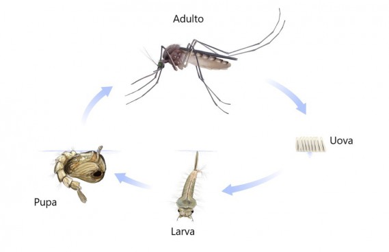 Quindi passano alla fase di pupa e infine si trasformano nelle zanzare adulte con le ali che vediamo in giro.
